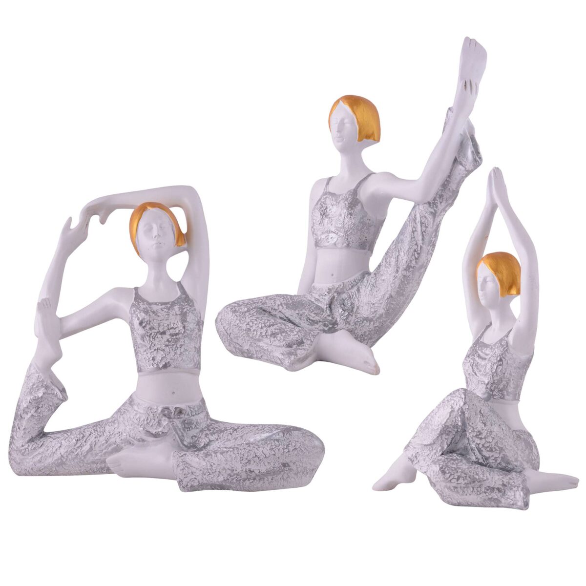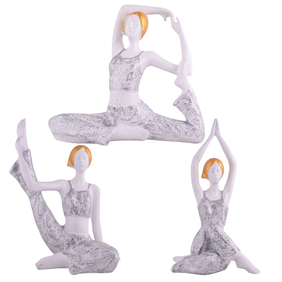 Suitable for home decor Yoga Posture Lady Statue Idol for Home Yoga Statue three pair admirable piece of gift (silver)