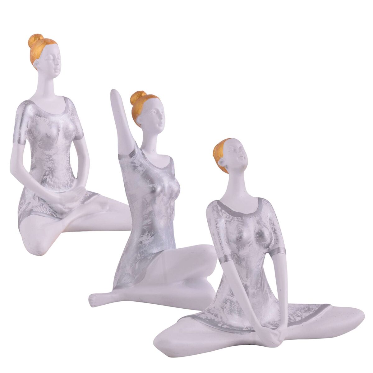 Suitable for home decor Yoga Posture Lady Statue Idol for Home Yoga Statue three pair admirable piece of gift (silver)